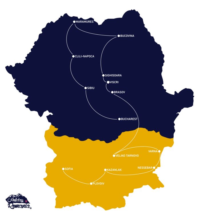 Itinerary: Bucharest Arrival – Bucharest City Tour with the Palace of Parliament, Ceausescu Residence, and a 1980s communist apartment – Olt Gorges – Cozia Monastery – Sibiu Walking Tour – Corvin Castle – Alba Iulia Citadel – Turda Salt Mine – Cluj-Napoca Walking Tour – Wooden Churches of Maramures – Maramures Highlights – Sapanta Merry Cemetery – Bucovina Exterior Painted Monasteries – Bicaz Gorges & Red Lake – Exclusive Gypsy Home Visit – Historic Center of Sighisoara – Saxon Villages with Fortified Churches in Transylvania – Wildness Bear Observatory – LiBearty Bear Sanctuary – Peles and Bran Castles – Veliko Tarnovo – Tsarevets Citadel – Madara Horseman Relief – Varna Walking Tour – Kamchia River Cruise – Nesebar Walking Tour – Kazanlak Thracian Tomb – Rose Valley and Damascena Rose Complex – Plovdiv Walking Tour – Bachkovo Monastery – Vineyard lunch and wine tasting – Rhodopi Mountains – Kostandovo Carpet Factory – Rhodopi train trip – Cooking Class in Bansko – Rila Monastery – Sofia City Tour with Boyana Church – Sofia Departure